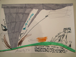 David has been working on a series of spine tingling drawings related to tornado devastation in Texas. In this dramatic scene, right after an alert from the National Weather Service, a cow, farmer and farm buildings were swept away by a huge tornado!